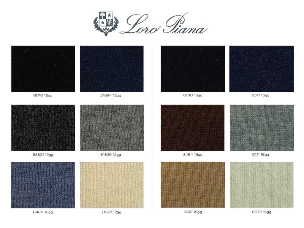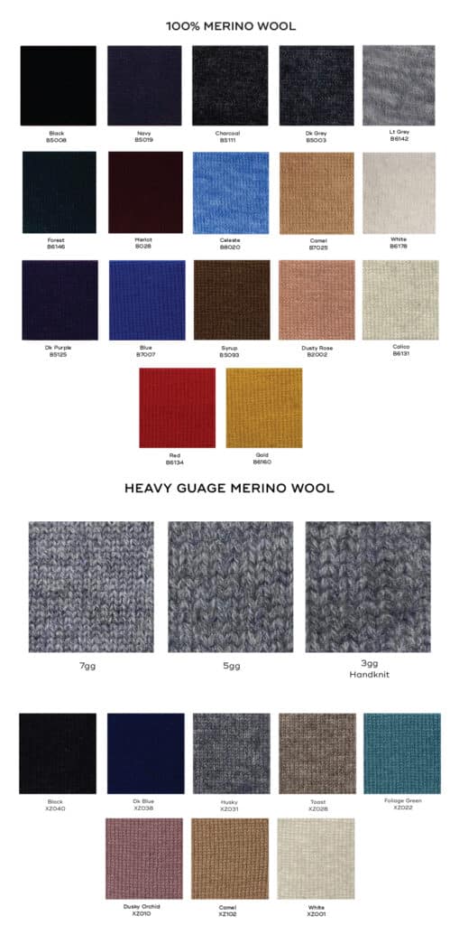 - Select from cashmere in four different weights and merino wool in two different weights.